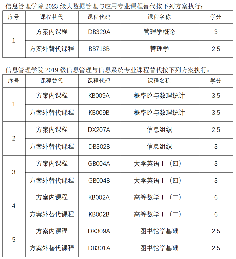 信息管理学院 2025-2026-2第5周周四专业课程替代公示
