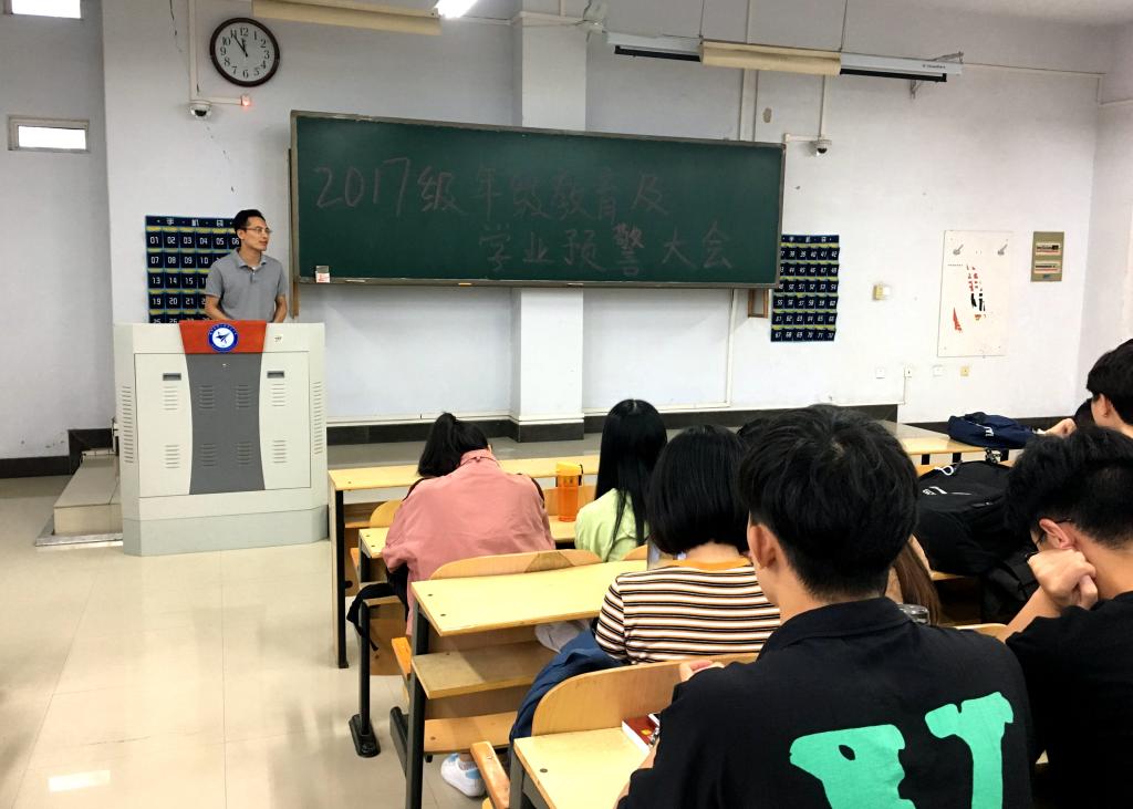 9月11日,我院于07A204及07C201成功召开了2017级年级教育暨学业预警大会,出席会议的有2017级辅导员王建鑫和2017级全体学生。