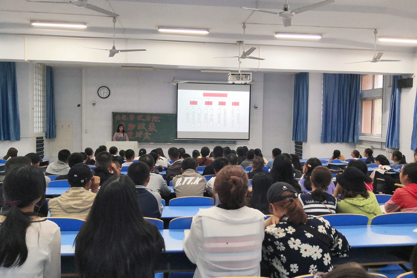 9月18日下午,我院于05B201举行了高校资助政策宣讲大会,大会由贷款助理任艺博宣讲,我院2019级全体新生参加。