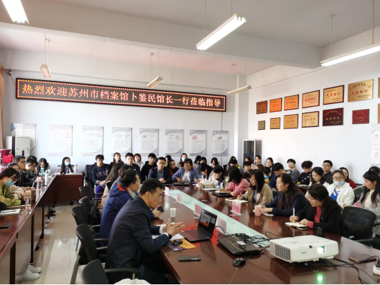 2020年10月19日,苏州市档案馆卜鉴民副馆长一行应邀莅临我院做题为“地方档案文献遗产保护开发研究——以苏州丝绸档案为例”的学术报告。参加活动还有苏州市档案馆谈隽调研员、周济秘书长、吴芳副主任,及我院党委副书记杨佳怿,档案学教研室主任朱兰兰等专业老师与全体研究生。