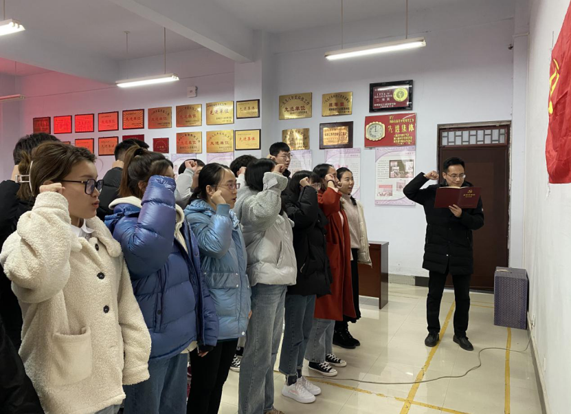 第一阶段,接收中共预备党员。会议开始,由李立伟等15名发展对象分别从自己对党的认识、入党动机,以及学习生活情况等方面汇报个人入党志愿。随后,入党介绍人依次介绍发展对象的主要情况,并对其能否入党表明意见。支部书记王建鑫报告发展对象的审查情况,经与会党员充分讨论,以无记名投票方式对发展对象进行投票,一致同意吸收15名发展对象为中共预备党员。最后,支部书记王建鑫带领本期预备党员面向党旗进行了庄严的入党宣誓。