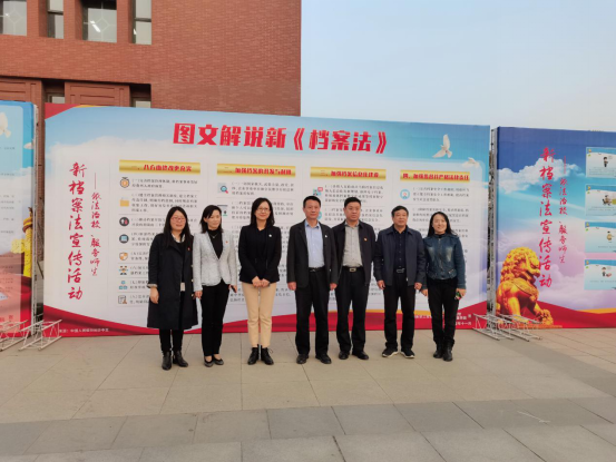 11月12日到11月14日,按照国家档案局、河南省档案局、河南省普法办宣传贯彻《中华人民共和国档案法》的要求,以“依法治校、服务师生”为主题的新档案法宣传展览活动在图书馆前顺利举办,本次活动由档案馆和信息管理学院联合举办。档案馆馆长沙全友、图书馆党总支书记高晶、信息管理学院党委书记陈宝杰、信息管理学院党委副书记马红岩、档案馆副馆长常海涛、档案馆档案部主任刘双红、信息管理学院团委书记徐佳佳作为嘉宾出席了展览活动启动仪式。