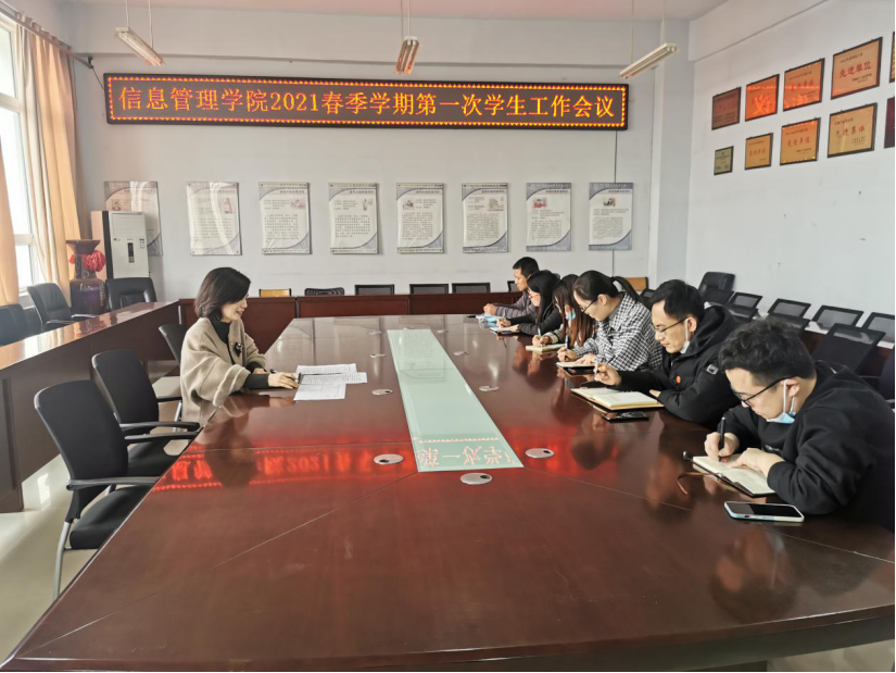 3月5日下午,信息管理学院于07C521会议室召开新学期学生工作会议。会议由院党委副书记马红岩主持,全体辅导员参加。