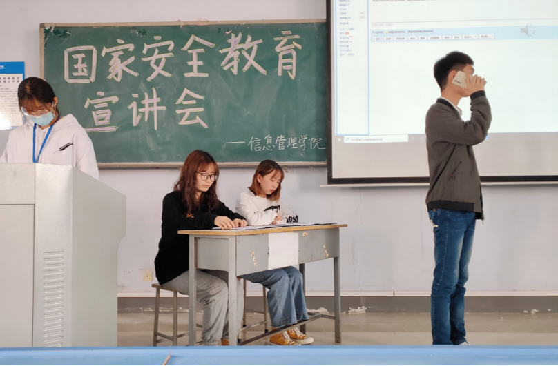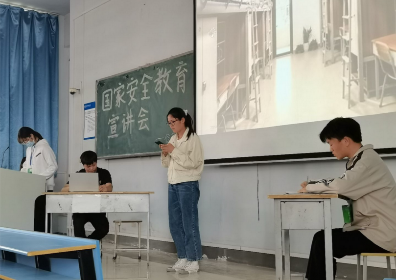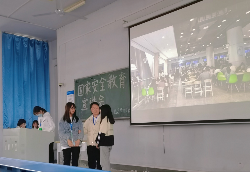 活动伊始,颜慧杰向同学们阐述了大学生学习国家安全知识的原因,指出其必要性,强调了国家安全在当前社会阶段的重要性。接着由讲解员张怡婷带领同学们学习国家安全的定义、大学生如何进行安全防护等相关知识,通过放映相关视频,介绍真实案例,进一步诠释了国家安全的意义,同时,列举了危害国家安全的行为,并介绍了正确的应对方法。