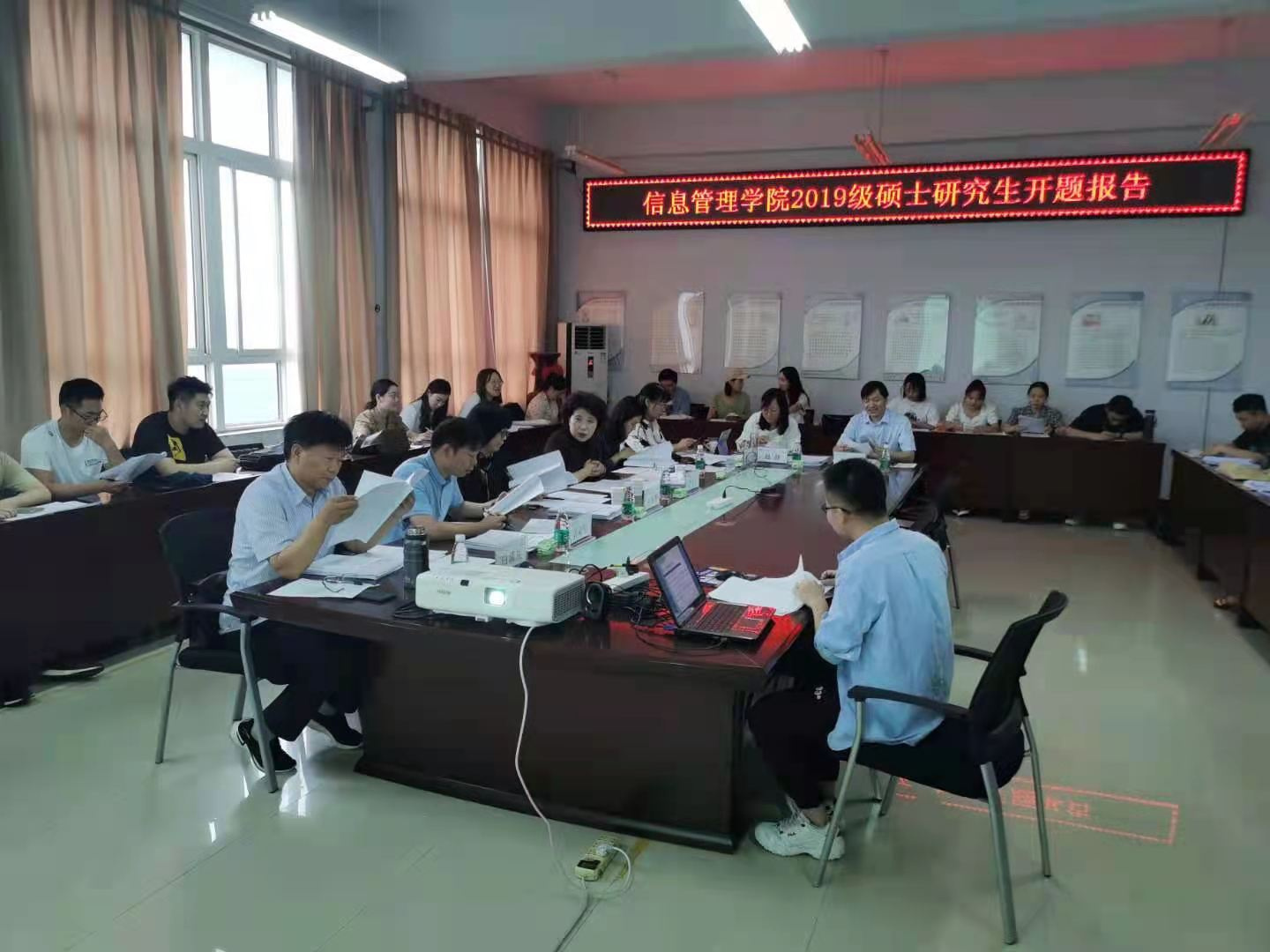 近日,信息管理学院举行了硕士研究生的毕业论文开题报告会。学院邀请了郑州图书馆馆长、研究馆员李红岩,河南省少儿图书馆副馆长、研究馆员王海辉和河南省科学技术信息研究院高级工程师周慧来作为校外专家为开题报告进行评审。出席本次开题报告会的还有担任评审专家组的研究生导师及2019级图书馆学和情报学学术硕士、图书情报专业硕士。