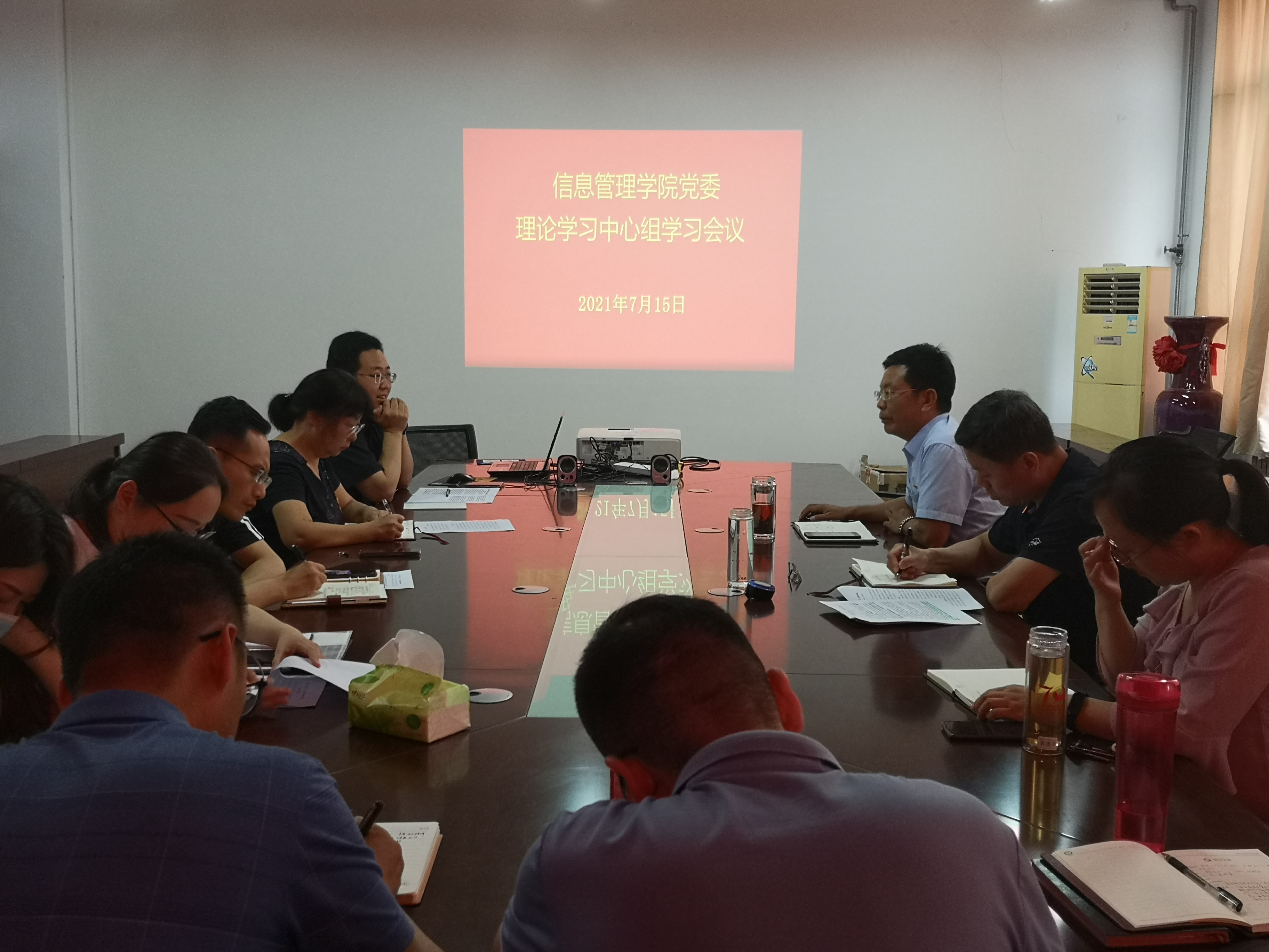 为深入学习领会习近平总书记在庆祝中国共产党成立100周年大会上的重要讲话精神,进一步凝聚思想共识,推动党史学习教育走深走实,7月15日下午,信息管理学院党委理论学习中心组专题学习习近平总书记“七一”重要讲话精神,学院党委委员和支部书记参加学习研讨。
