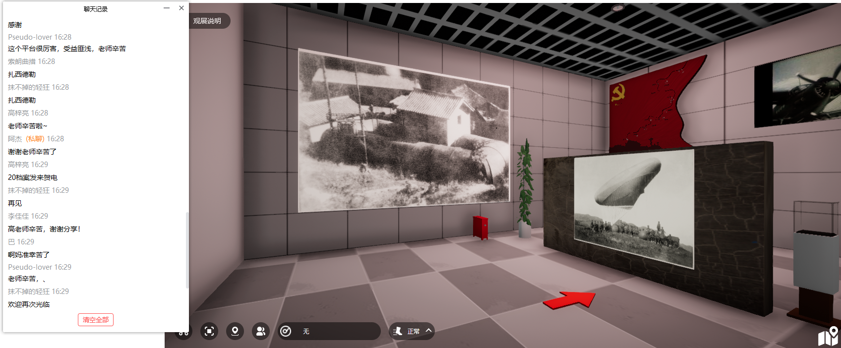 在课堂上,高老师以直播形式和同学们共同实施了陈列选题、陈展宣传、叙事设计、档案数字化、档案布展等实验全过程,实践了“项目驱动”的档案陈列展览作品设计开发,体验了“看红色档案、用红色展品、布红色陈展、讲红色故事”的沉浸式全景思政,课堂气氛活跃。通过实验,使同学们对档案陈列应用理论、技术和方法有了更为生动直观的认识和掌握,同学们也对虚拟仿真技术与档案实践的结合产生了浓厚兴趣,纷纷表示受益匪浅,并回复“扎西德勒”向高老师致以祝福。