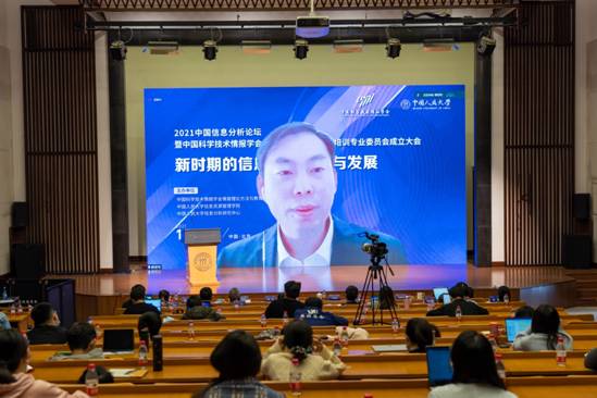 2021年11月13日,由中国科学技术情报学会情报理论方法与教育培训专业委员会、中国人民大学信息分析研究中心主办的“2021中国信息分析论坛暨中国科学技术情报学会情报理论方法与教育培训专业委员会成立大会”以线上线下相结合的形式于北京召开,会议主题为“新时期的信息分析变革与发展”,以观看线上直播形式参与会议的达到6000多人次。信息管理学院信息管理系主任郭亚军教授应邀出席会议进行主旨演讲,我院老师和研究生、本科生同学以各种形式参与了论坛。