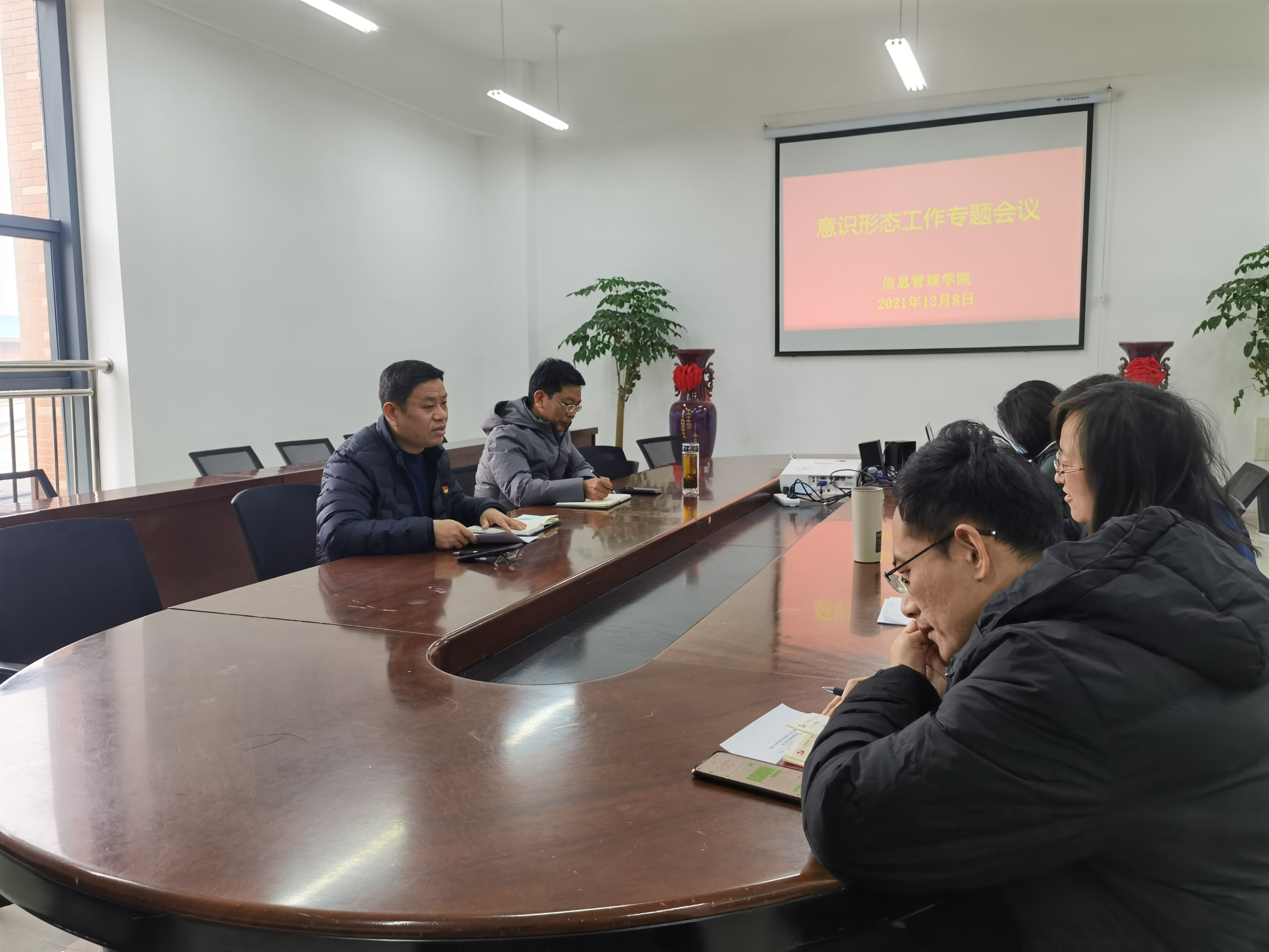 为进一步做好意识形态工作,12月8日上午,信息管理学院党委召开了意识形态工作专题会议,会议由陈宝杰主持,学院党委委员参加会议。