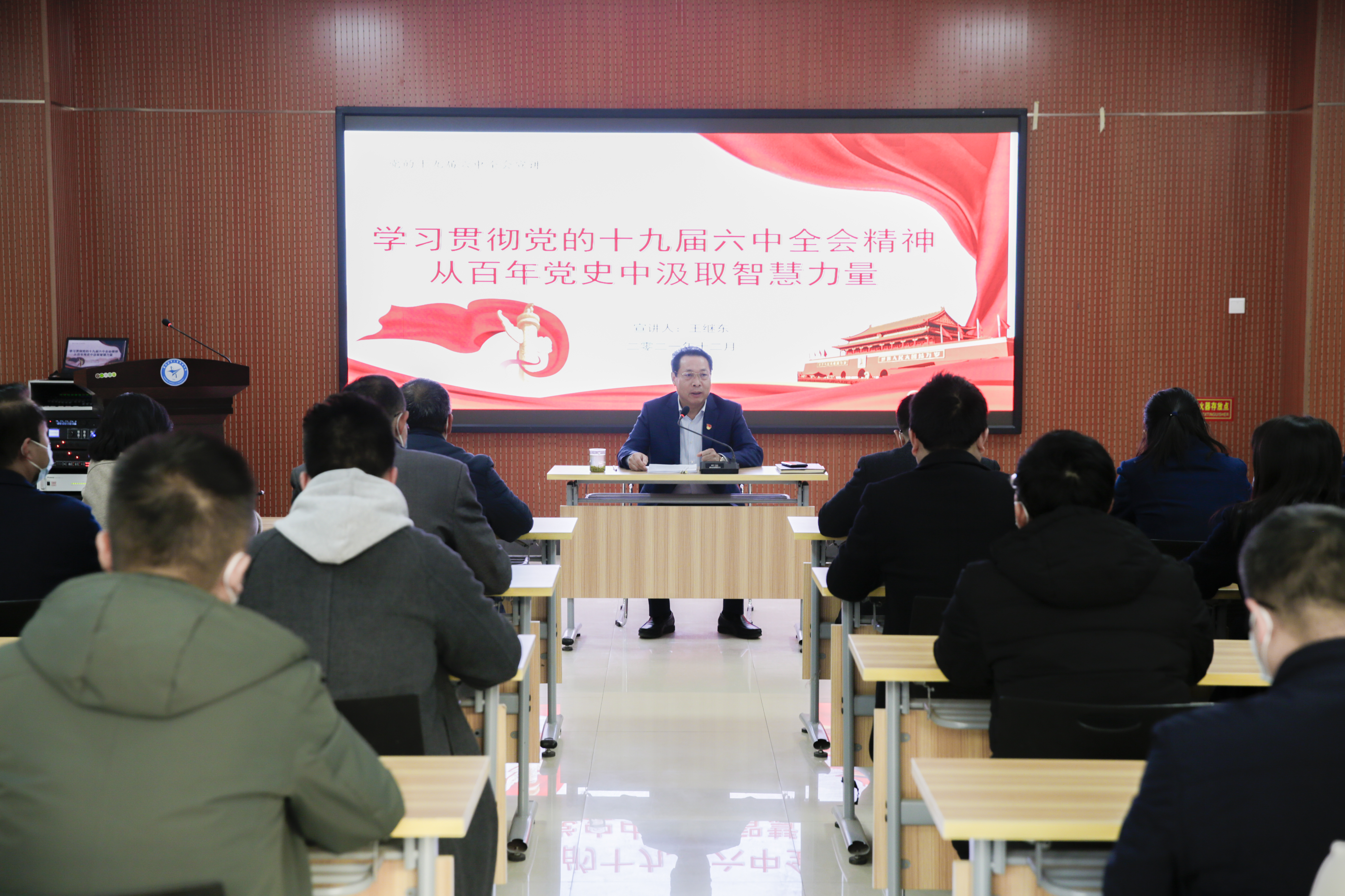副院长王继东在专题思政课上,从深刻认识党的十九届六中全会的重要意义、清晰把握党的十九届六中全会的精神要义等四个方面,深刻阐释了党的十九届六中全会的丰富内涵和重大意义。