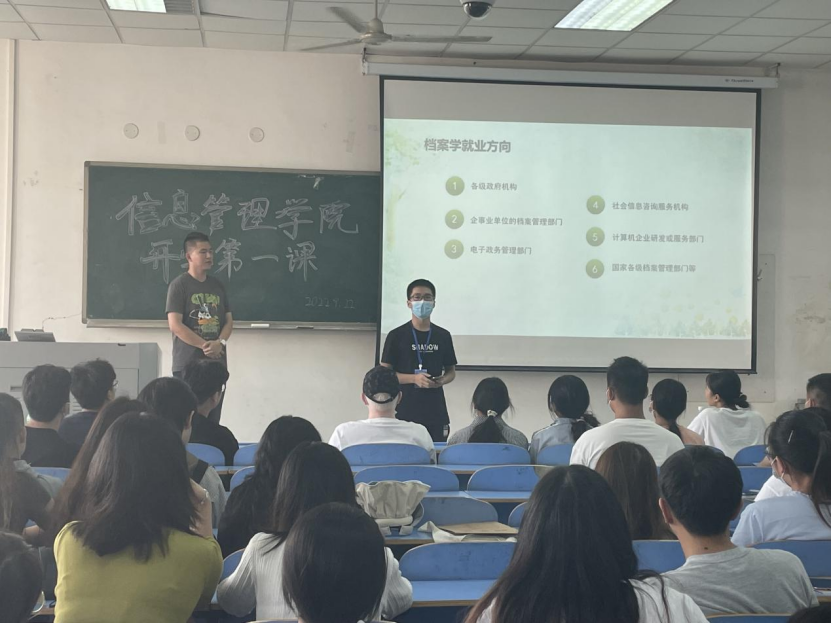 第二,分析当下就业形势,指出在疫情影响下同学们将要面临的就业压力,要早做就业准备。会上孙政卿列出档案学的就业方向和招聘方向,介绍了就业相关公众号、网站以及其他就业资源。强调新生把握住未来秋招、春招机会,并合理利用公众号等就业资源。