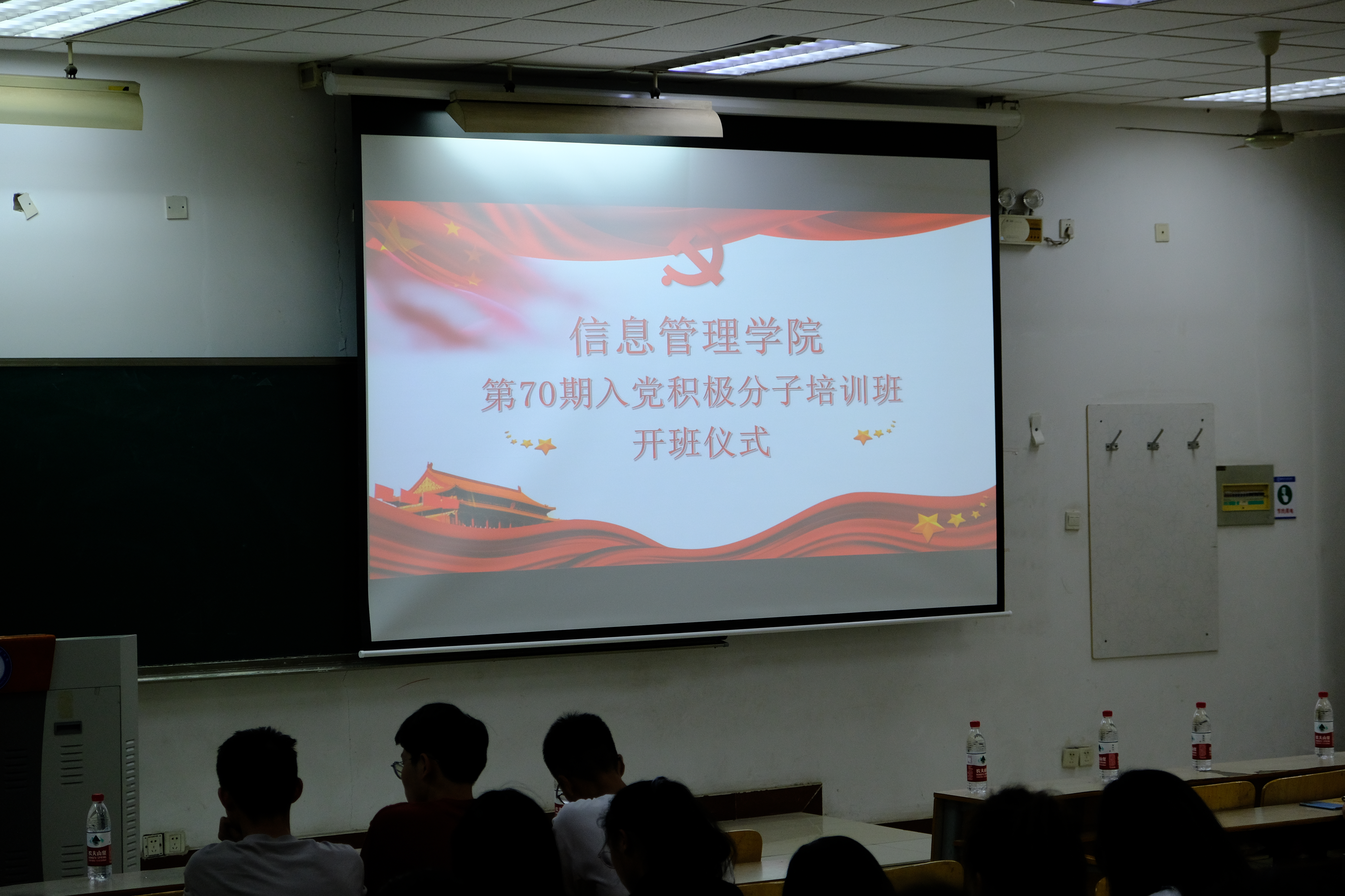 在庄严神圣的国歌声中,开班仪式拉开帷幕。首先,学工办主任王建鑫宣读了《信息管理学院分党校第70期入党积极分子培训班教学计划》,介绍本期党课的基本内容。接着,党委副书记马红岩宣读了《信息管理学院第70期党课纪律要求》,提出入党积极分子在党课学习中应该“读原著,学原文,悟原理”,不断提升自身政治素养与理论修养。