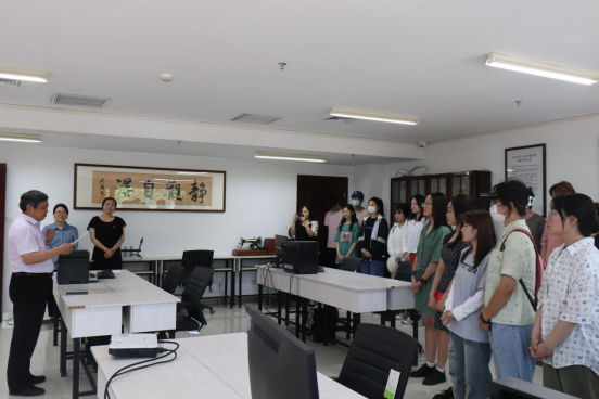 随后,档案馆保管利用部主任郭玲带领师生代表参观了档案征集接收整理室、档案数字化加工室和综合库房。她具体介绍了接收、装订、上架档案的流程、标准库房馆藏、档案类别分布以及安全管理情况,又向同学们展示了学籍类档案的基本规范和纸质档案数字化加工的流程。