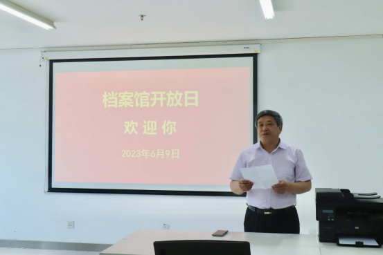 活动主要为“行走课堂·跟着档案去旅行”和 “走进职业——我与档案馆员面对面” 两个体验主题。首先,档案馆副馆长常海涛对我院师生代表表示热烈欢迎。他表示,此次档案馆开放日活动,是学校庆祝第十六个国际档案日系列宣传活动主要内容之一,也是档案文化节的重要组成部分。接着,常海涛介绍了档案馆的发展历程和基本情况,他向同学们强调,要牢记档案人为党管档,为国守史,为民服务的神圣使命,充分利用我校省级特色档案学专业优势,把档案专业理论学好,把档案实训实践好,努力成为严谨细致、精益求精的兰台人,为国家档案事业发展贡献力量。