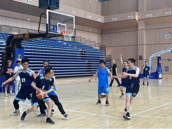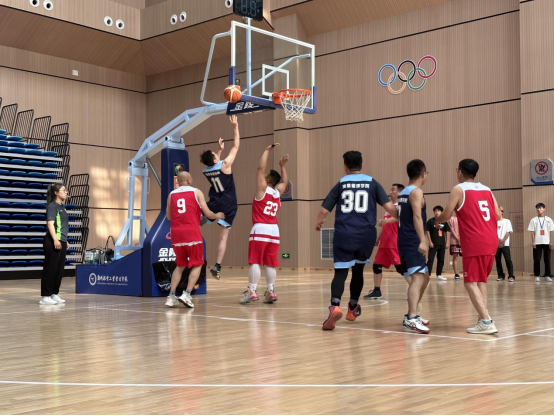 赛前,我院分工会组织参赛教职工进行了系统专业的赛前训练。为了提高竞技状态,争取优异成绩,运动员们刻苦训练,积极备赛。比赛过程中,学院领导亲临赛场,指导、慰问参赛教职工,给予大家极大的精神鼓舞。赛场上,各位运动员团结协作、努力拼搏,他们发扬“友谊第一,比赛第二”的体育风格,用犀利的突破、完美的防守和精彩的投篮展现出我院教师坚持不懈、奋勇争先的精神风貌,用汗水在赛场留下了无数精彩瞬间。