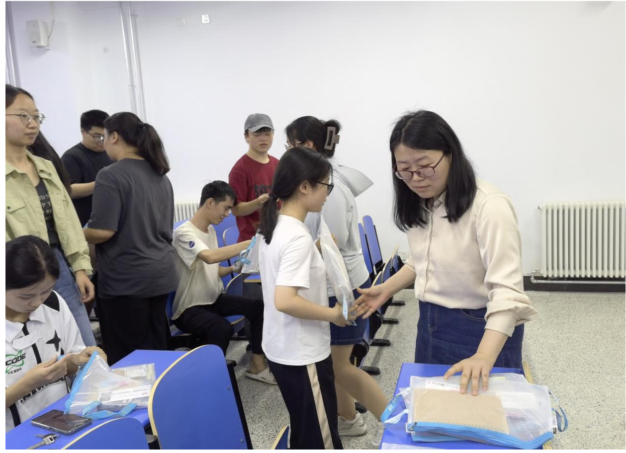 最后,学院老师为同学们分发文具套装,并合影留念。