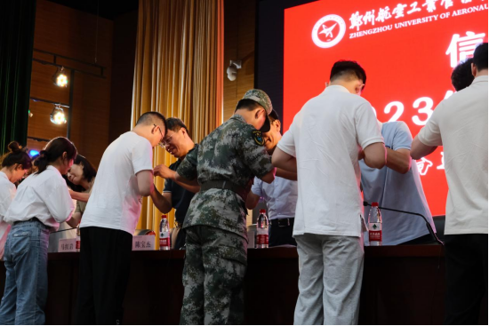 最后,党委书记陈宝杰以“青春奋进新时代,勇毅笃行向未来”为主题,以爱国主义和理想信念教育为核心,指出各位新生有幸在2023年学校实现跨越式发展的关键时期加入郑航,作为见证者和参与者,给各位新生提出几点期望:第一,不忘初心,继续前行,做新时代青年,将个人发展与国家发展和民族复兴紧密相连。第二,目标明确,胸怀大志,重目标制定和落实,度过充实的大学生活。第三,掌握学习方法,提升学习能力,尽快适应大学学习和生活,尽早融入班集体。第四,锤炼坚强品格,与人为善,向他人学习。第五,树立纪律意识和规矩意识,注重自律和自我管理。最后希望同学们秉承“严谨、求实、开拓、进取”的校训,适应新环境,为实现理想而不断拼搏进取。