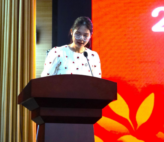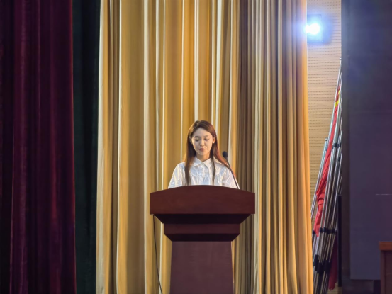 接着,主席台就座的学院领导及全体辅导员为新生代表佩戴校徽,研究生司晨、本科生吴卓涵和牛春草作为新生代表发言。