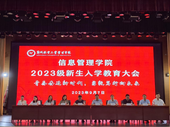 9月7日晚,信息管理学院2023级新生入学教育大会在龙子湖校区演艺厅举行。我院党委书记陈宝杰、院长李泽锋、副院长李伟超、副院长赵静、副院长高大伟、全体专职辅导员以及全体2023级新生参加本次会议。会议由我院党委副书记马红岩主持。