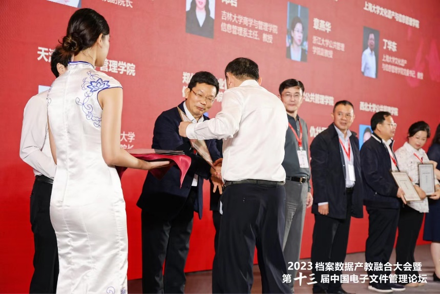 2023年10月13-15日,由国际档案理事会、中国人民大学、宁波市人民政府指导,中国人民大学信息资源管理学院、宁波市档案局和宁波市档案馆联合主办的2023档案数据产教融合大会在浙江宁波成功举办。在大会上,来自高校、档案馆和企业的36家单位联合成立“档案数据产教融合发展平台”。该平台是高等教育机构、档案管理部门和产业界协同共推档案数字化转型的重要载体。我院作为发起单位之一,出席了成立仪式。