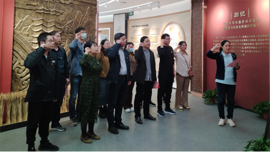 活动共分为四个环节:首先,教工三支部书记常金玲教授就活动目的、流程进行了简短介绍,明确活动旨在增强全体党员铸牢中华民族共同体意识的理论自觉和行动自觉,牢固树立休戚与共、荣辱与共、生死与共、命运与共的中华民族共同体理念。随后,全体党员跟随展馆讲解员入馆参观学习,深入了解中华民族共同体形成和发展的历程,聆听“四个共同”“五个认同”的细致解读。通过“红石榴微课堂”沉浸式教育体验活动,聆听民族团结故事、体验木版画拓印、香囊制作等活动,各位教工党员深刻感受了展馆“引导人、影响人、滋养人”的教育学习效果。随后,各位党员畅谈各自学习体会,各支部书记进行了交流总结。最后全体教工党员重温入党誓词,将主题党日活动推向高潮。