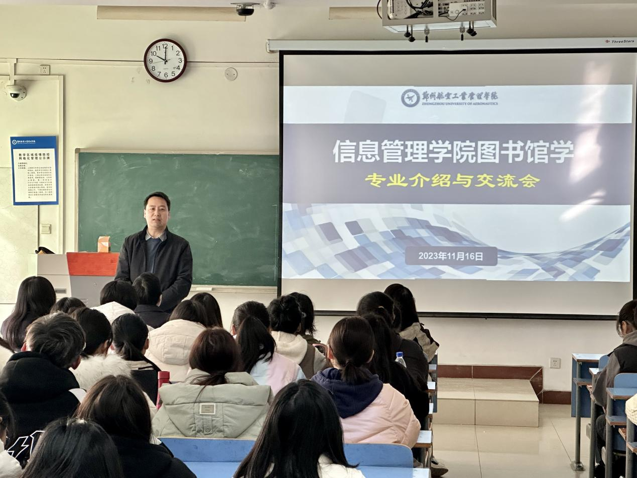 在专业教育活动上,图书馆学系主任朱红涛向2023级新生介绍了图书馆学的发展情况和师资力量;系副主任赵蕊菡介绍了图书馆学专业的人才培养方案、主要课程与特点、专业教学资源、成绩管理规定等内容。