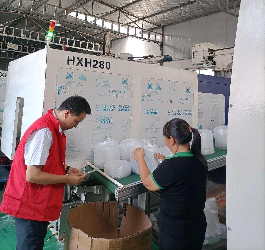 在河南盛键塑业有限公司,朱红涛老师通过实地调研及交流详细了解公司餐盒包装产品类型、型号和规格、产量及市场情况。结合企业当前实际情况,朱红涛通过与本单位后勤负责人沟通,了解高校餐厅对打包餐具采购来源及产品要求,并把信息反馈给企业,同时提供加入河南片区高校后勤采购联盟信息指导和支持,助力其加入该采购联盟,拓展企业销售渠道。