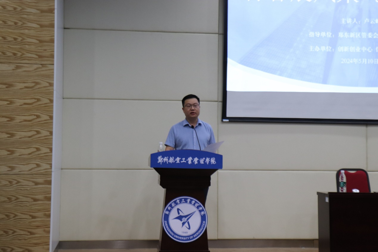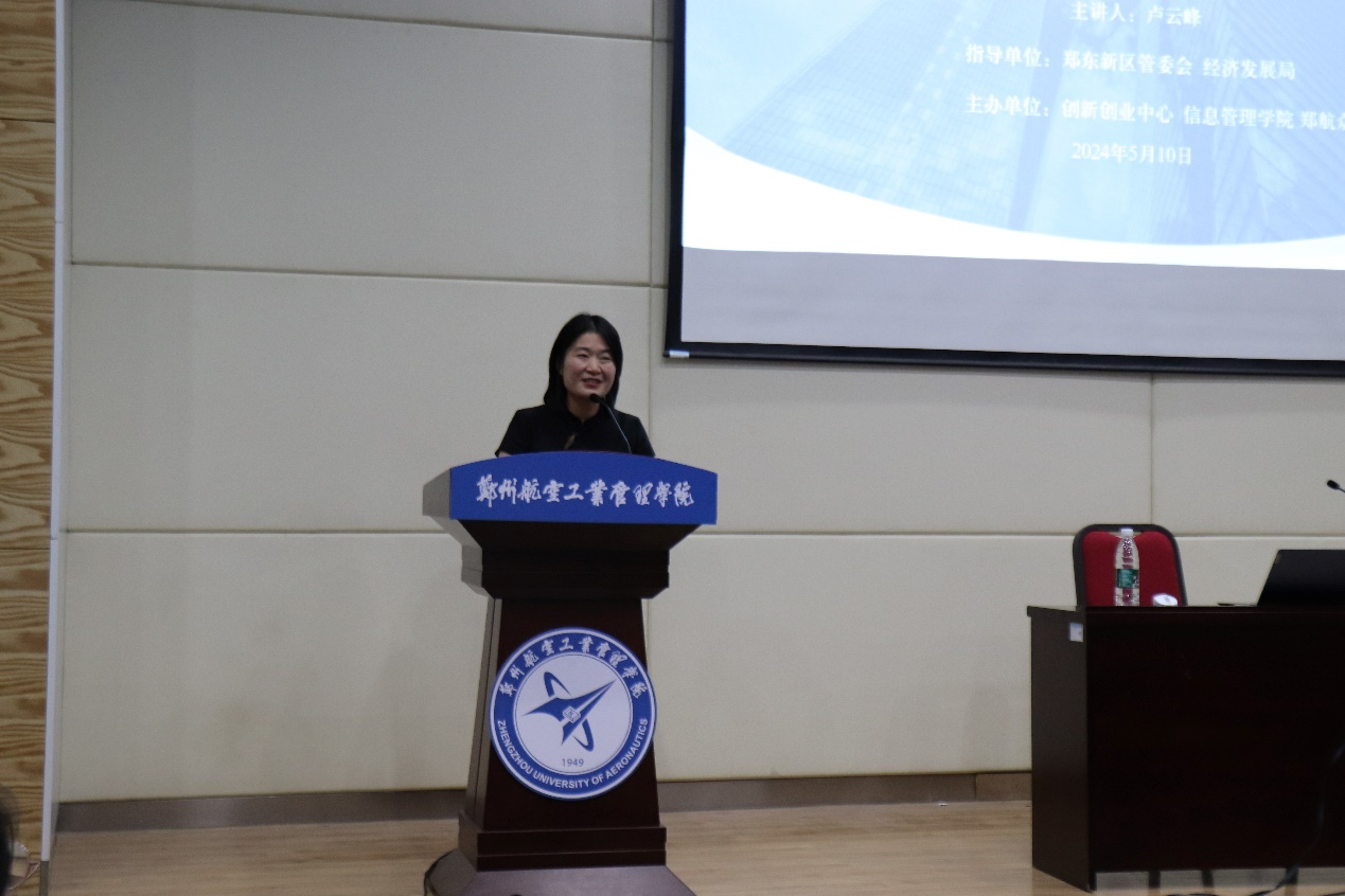 5月10日下午,我院于图书馆第三报告厅承办了郑州航院第46期“青春领航”创新创业大讲堂活动。此次活动由我院研究生辅导员刘陈姣主持,同时邀请到了中博奥技术有限公司董事长卢云峰,副总经理郭喜梅进行主讲,我院副院长李伟超、分团委书记徐佳佳、档案学系主任朱兰兰应邀出席。