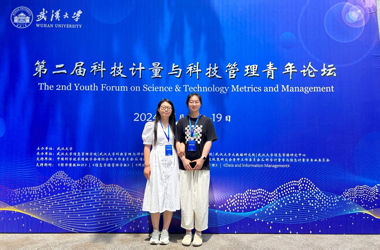2024年5月18日-19日,第二届科技计量与科技管理青年论坛在武汉召开,此次论坛由武汉大学主办,武汉大学信息管理学院、武汉大学科教管理与评价中心、武汉大学(武汉)数据智能研究院、武汉大数据研究院和武汉大学信息资源研究中心联合承办。信息管理学院赵静教授团队的研究生杨梦翔、樊宁馨参加论坛并做了研究分享。