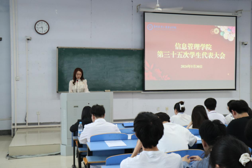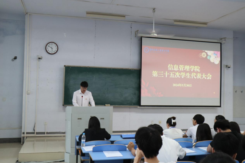 5月30日下午,我院于05A301召开第三十五次学生代表大会,我院团委书记徐佳佳、校学生会主席团代表刘凯,我院各年级学生代表出席会议。