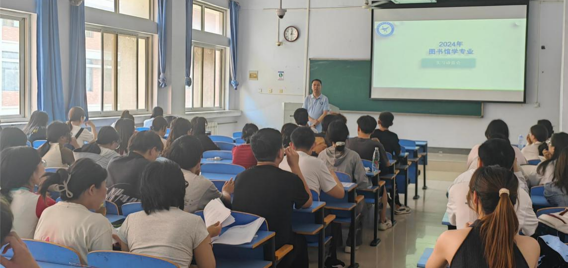 2024年6月20日下午三点,图书馆学专业实习动员大会在05A302召开。图书馆学系教师、21级图书馆学和23级图书馆学等师生参加此次会议。