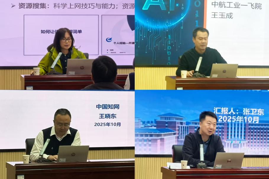报告会上,中国航空工业集团成都飞机设计研究所的冷洪霞专家以“情报工作核心竞争力建设”为题,深入剖析了新形势下情报能力构建的关键要素与实施路径。中国航空工业集团第一飞机设计研究院的王玉成专家则围绕“科技情报借力AI的路径探索”,分享了人工智能技术在情报采集、分析与服务中的创新应用与实践思考。同方知网技术有限公司的王晓东专家介绍了“华知大模型进展与应用案例”,展示了大型语言模型在知识服务与情报挖掘中的最新成果与广阔前景。吉林大学张卫东教授以“科技情报发展演进与前沿趋势”为题,从学术研究与学科发展的角度,系统梳理了科技情报的演变历程并展望了未来发展方向。
