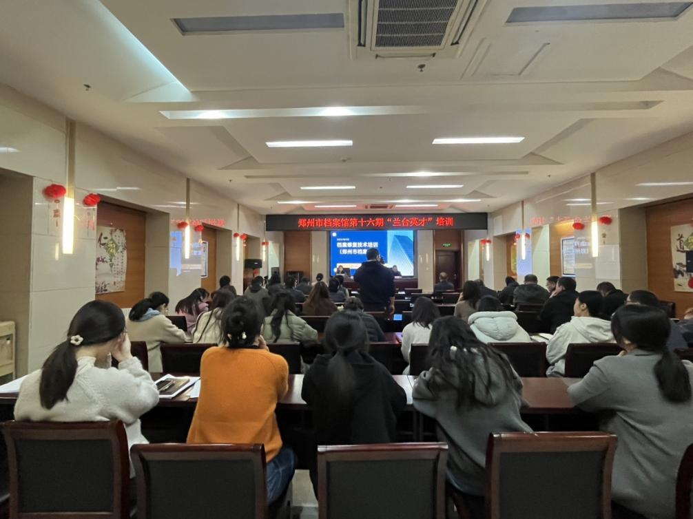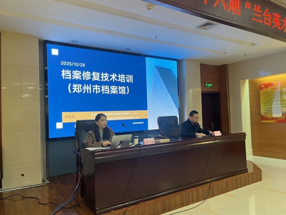 为进一步提升档案从业人员的专业技能,强化档案修复实操能力,筑牢馆藏档案安全防线。近日,我院信息技术实验中心主任、“档案灾害预防与应急抢救”国家档案局重点实验室成员郑雪丽老师受邀前往郑州市档案馆,开展了档案修复技术专题培训。郑州市档案馆相关领导及馆内各科室骨干参加了此次培训。