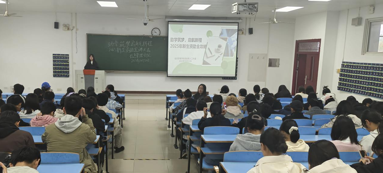 为切实落实国家资助政策,深化资助育人理念,10月30日,我院在01B206教室成功举办2025级新生资助政策宣讲会。会议由学院资助助理蒋慧静、杨雅琴共同主讲,全体2025级新生参加。