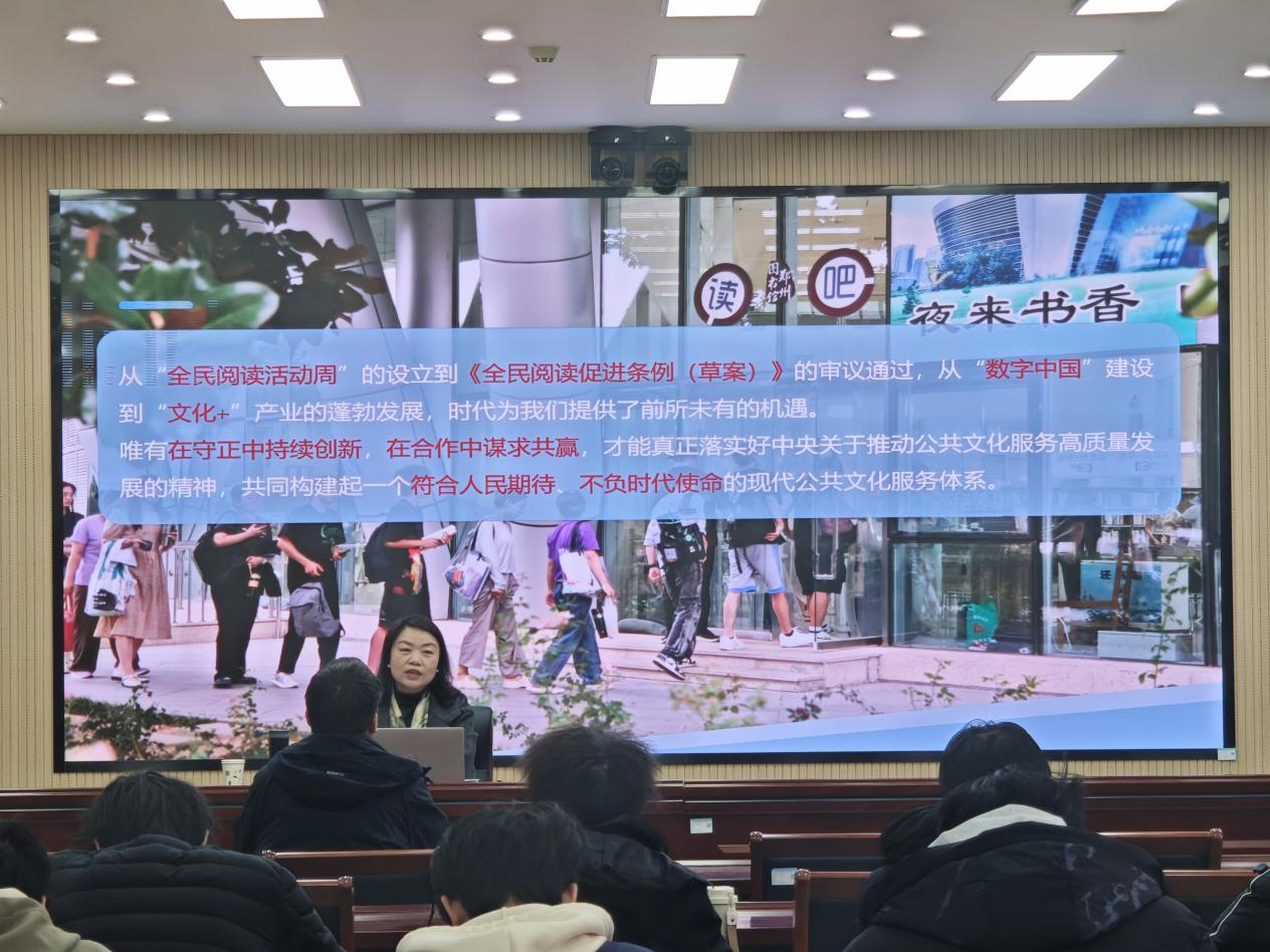 此次专题报告内容丰富,兼具理论高度与实践价值,让学子们深入了解新时代公共图书馆理论应用和创新发展路径,激发了学生学习兴趣,进一步提高了学院人才培养质量。