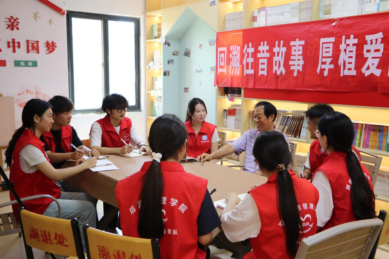 7月3日,郑州航空工业管理学院信息管理学院“社区别样红”志愿服务团在相济路社区开展“回溯往昔故事,厚植爱国情怀”口述档案活动,特邀校关工委五老宣讲团成员李春灿进行访谈。