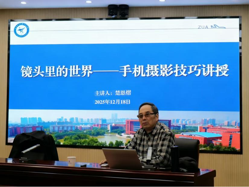 12月18日,我院在06C203开展了“镜头里的世界—手机摄影技巧讲授”专题讲座。本次讲座邀请河南省高校摄影学会副主席、我校艺术与设计学院原党委书记楚恩熠主讲。我院党委书记陈宝杰、新媒体中心指导老师孙政卿出席,学院新媒体中心全体成员参加。