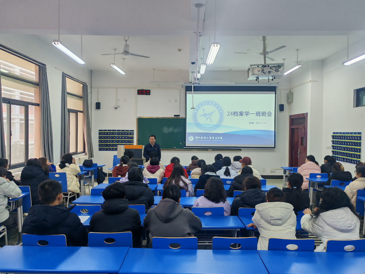 班会伊始,副校长李泽锋以“十四五”规划发展成果为切入点,向同学们系统分享了我国过去五年在各领域取得的重大突破与宝贵实践经验,深入剖析了“十五五”规划期间面临的复杂国际局势与发展任务,着重强调青年学子在中国式现代化建设中的责任担当,鼓励大家以青春之姿直面挑战、不畏挫折,将个人理想融入国家发展大局。随后,结合档案学专业特性与校领导联系班级“精准赋能专业成长”的初衷,李校长从档案工作实践中提炼发展启示,与同学们深入交流专业学习的核心方向。他指出,档案学子需牢牢把握档案工作的政治性,锚定服务国家战略的发展定位,主动适应档案数字化转型趋势,夯实专业基础、锤炼过硬本领,持续提升核心竞争力,让专业能力成为支撑国家发展的坚实力量。班会尾声,李校长向同学们提出三点期望:一是厚植家国情怀,强化政治素养,将职业规划与国家发展大业紧密结合;二是秉承工匠精神,以严谨细致的态度深耕专业学习,做到五育并举、全面发展;三是勇担时代使命,以档案人的责任与担当记录时代、服务发展。