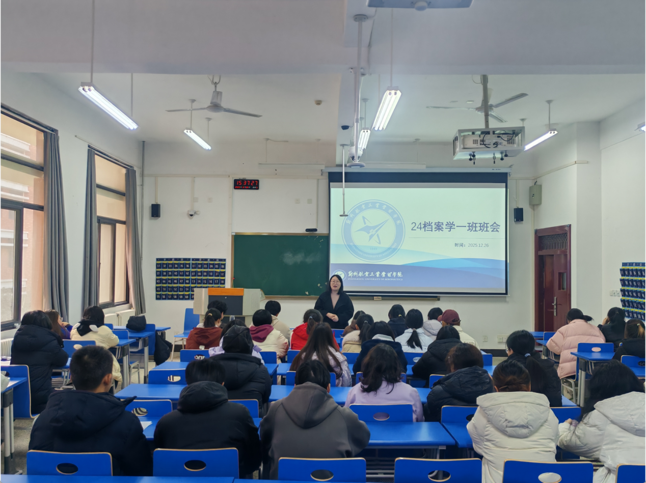 为落实校领导深入联系班级工作要求,厚植青年学子家国情怀,推动专业学习与时代发展同频共振,12月27日下午,副校长李泽锋深入联系班级,分别在03B201和03B202教室为24级档案学一班上“决胜‘十四五’,奋发向前进”的思政课,并参与主题班会。我院分团委书记、24级辅导员徐佳佳陪同参与。