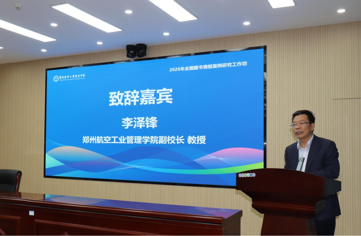 为进一步深化学科建设,提升专业学位研究生培养质量,加强全国图书情报领域案例开发与研究的交流合作,3月27日至29日,由全国图书情报专业学位研究生教育指导委员会担任学术指导单位,我校承办,北京华图新天科技有限公司协办的2026年全国图书情报案例研究工作坊在郑州航空工业管理学院信息管理学院顺利举办。我校党委委员副校长李泽锋教授,全国图书情报专业学位研究生教指委委员马海群教授、段宇锋教授,教指委秘书处秘书、南京大学图书馆副馆长董克研究员,吉林大学王晰巍教授,天津师范大学何颖芳博士,我校研究生处长张国辉、社科处处长郝伟斌以及来自全国40余家高校、科研院所、公共图书馆等机构的80余名教师、科研人员和业界专家齐聚郑州,共同探讨图书情报案例开发的前沿理论与实践方法。我校信息管理学院图书情报硕士专业学位点的研究生导师及在读研究生也参与培训。