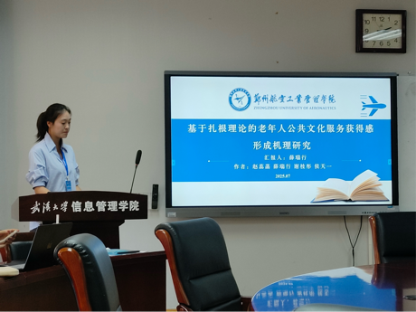 在论坛的分论坛交流环节,薛瑞行同学作为少数入选的硕士生代表,在“信息行为与数据素养”分论坛进行了以“基于扎根理论的老年人公共文化服务获得感形成机理研究”为题的报告,并与在场的专家与博士生进行了学术探讨,展现了郑航学子的良好风貌。