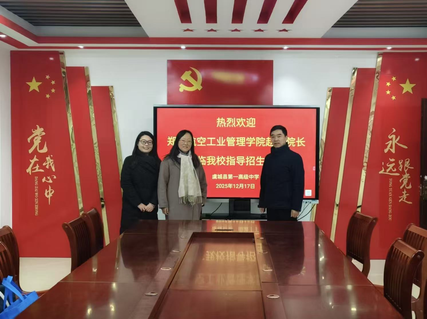 为持续提升我校本科生源质量,深化高校与高中教育衔接,吸纳更多优秀学子,2025年12月17日,信息管理学院副院长赵静前往商丘市虞城县第一高级中学开展本科招生宣传,虞城县第一高级中学毕业生、现就读于我院的研究生杨梦翔一同前往。